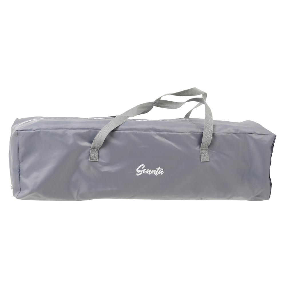 Compacto quando fechado e fácil de transportar, o Berço Sonata acompanha bolsa exclusiva para armazenamento e transporte, sendo perfeito para viagens, passeios ou para quem precisa otimizar espaço. Sua confecção em tecido 100% poliéster, aliada a peças plásticas em polipropileno e nylon, garante durabilidade, fácil limpeza e um excelente padrão de acabamento.