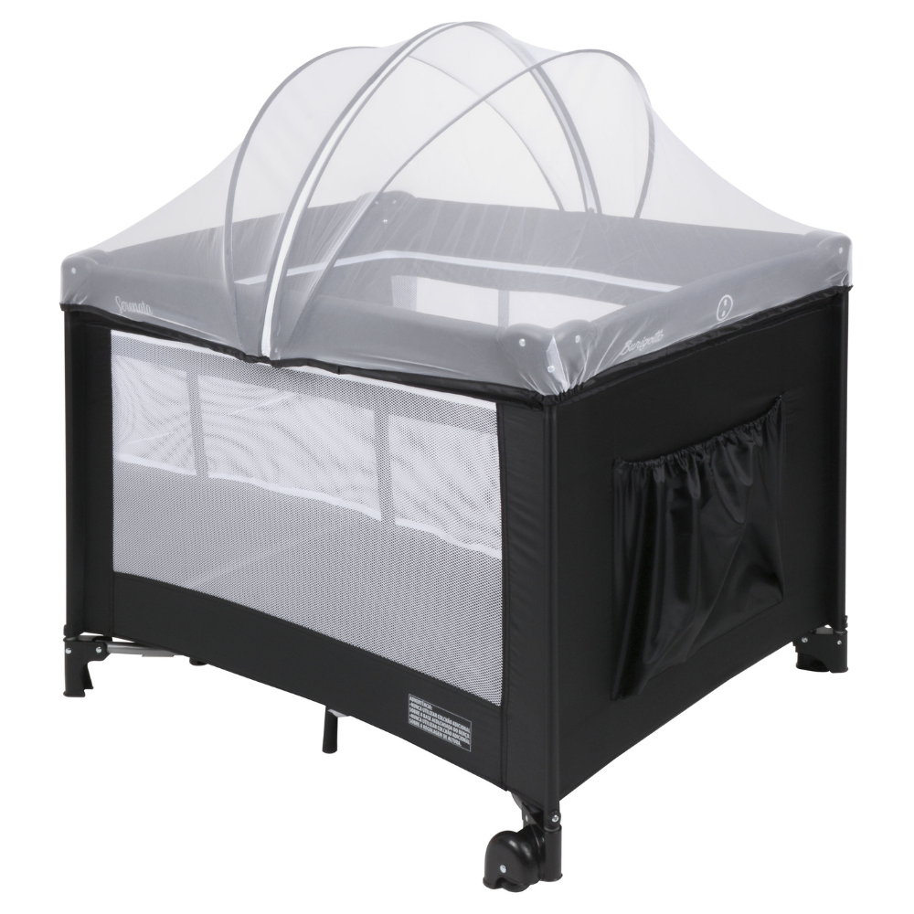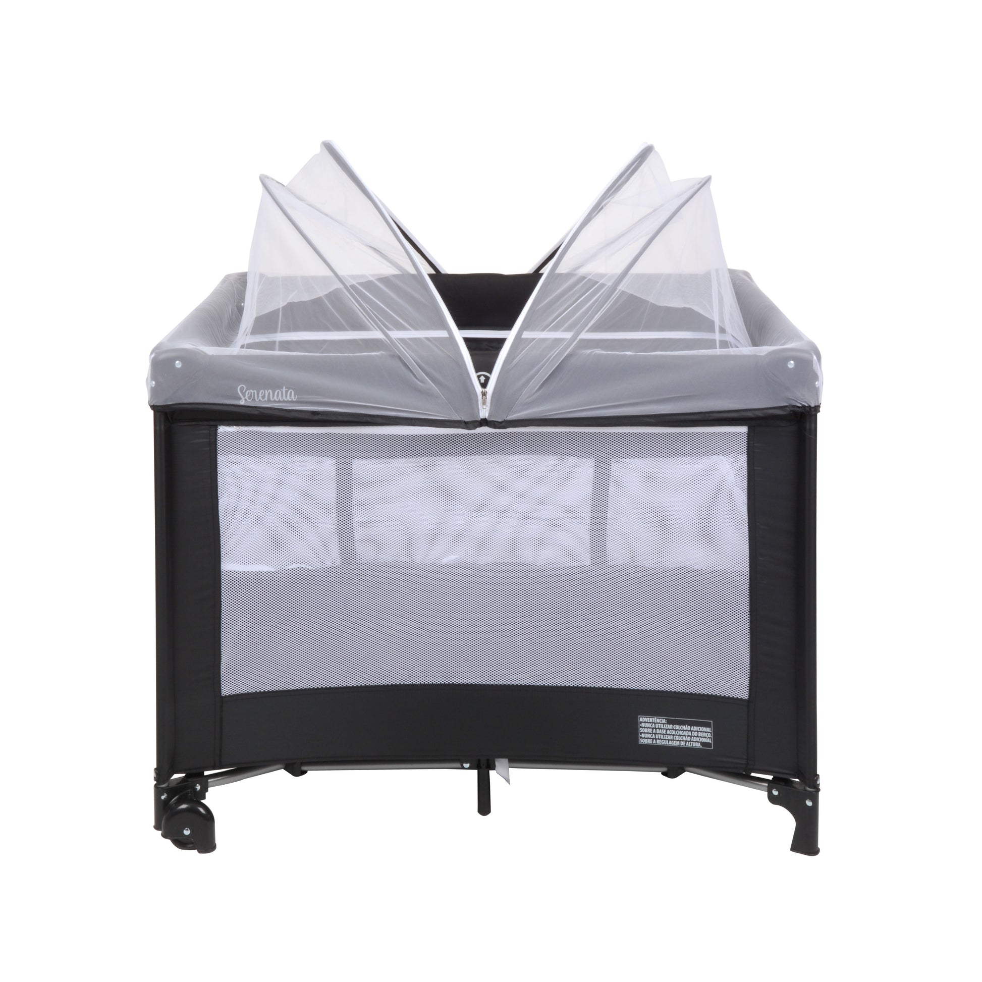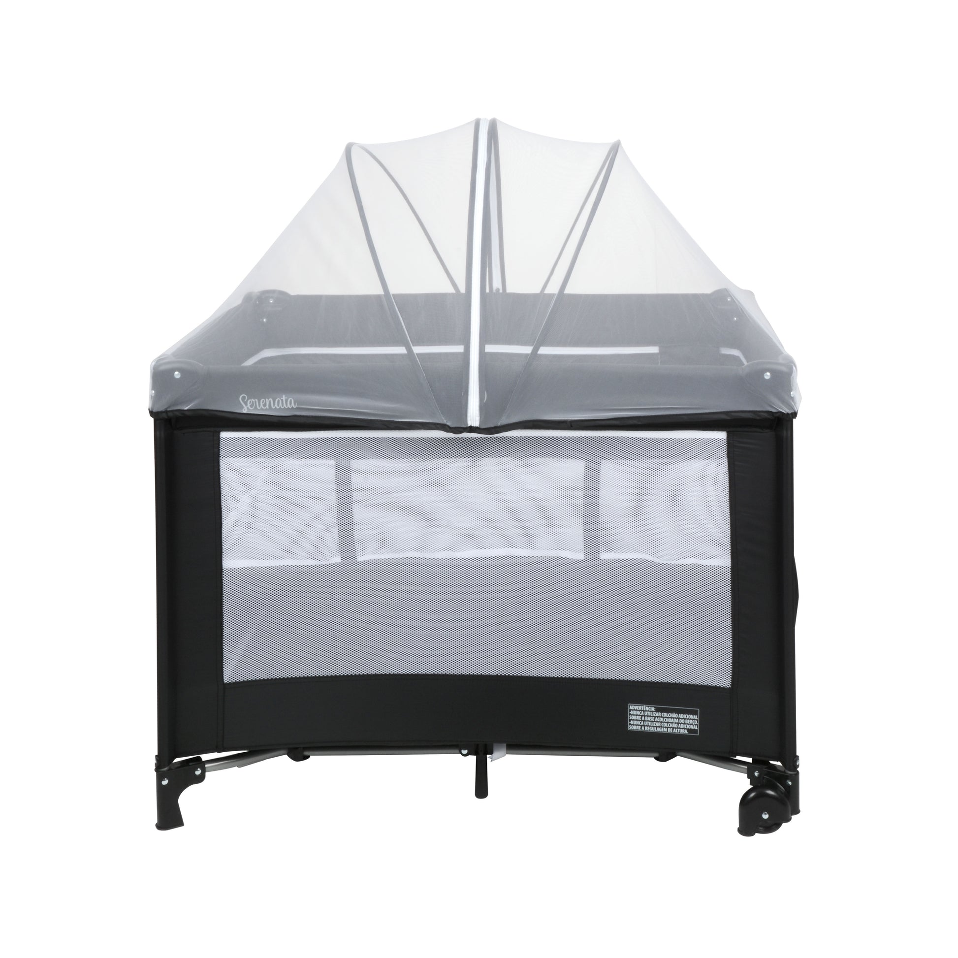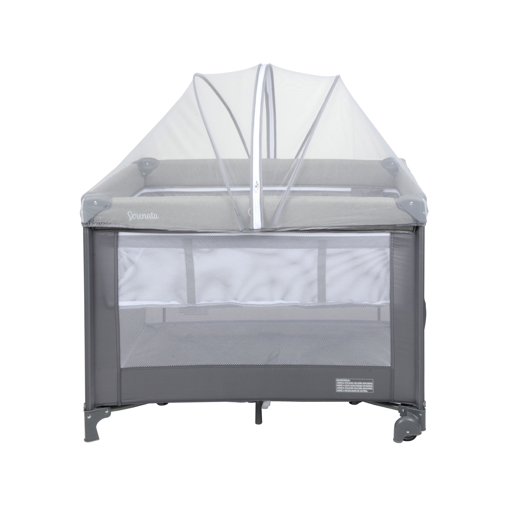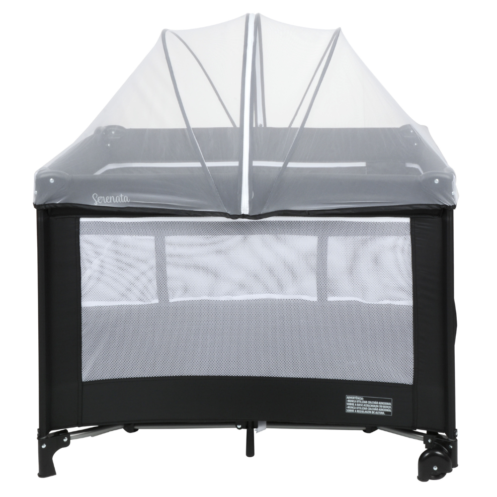 Sua capota com mosquiteiro em arco e zíper garante proteção extra contra insetos, mantendo o bebê confortável e seguro. As travas de segurança nos quatro lados e no fundo reforçam a estabilidade do berço, enquanto as rodas localizadas em um dos lados permitem deslocamento facilitado sem comprometer a segurança.