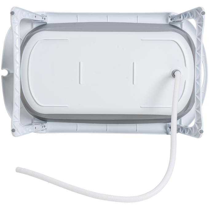 Sua estrutura dobrável permite um fechamento compacto, facilitando o armazenamento em ambientes pequenos e o transporte. O suporte em aço proporciona maior estabilidade durante o uso, enquanto a banheira em estrutura plástica resistente garante durabilidade e fácil higienização.