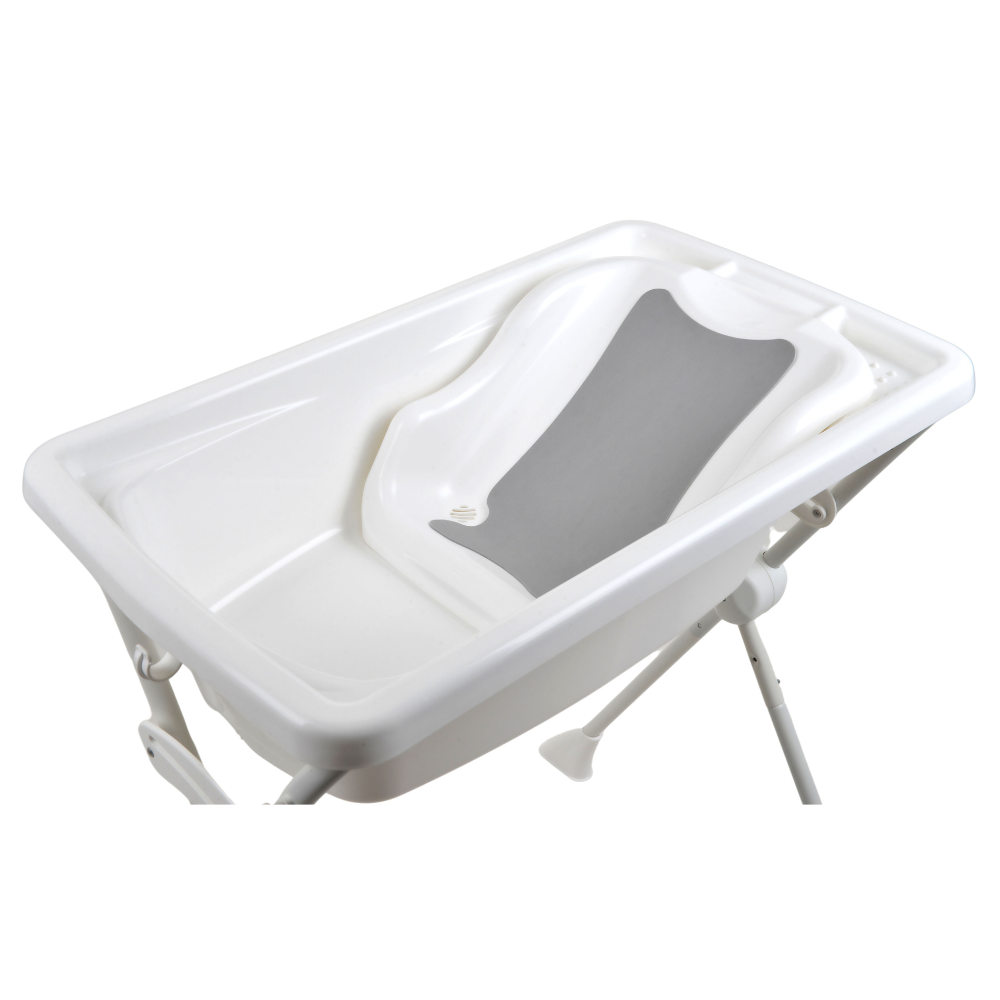 Com capacidade máxima de 20kg (sendo até 10kg da criança + 10 litros de água), o Kit Banho foi projetado para proporcionar estabilidade e tranquilidade aos pais. A banheira acompanha assento redutor de profundidade, perfeito para recém-nascidos, garantindo maior apoio e segurança. O suporte possui pernas desmontáveis, facilitando o armazenamento e ocupando menos espaço.