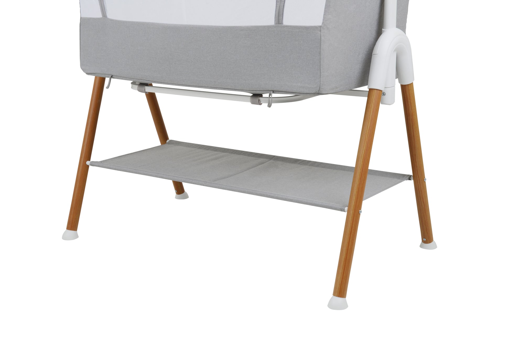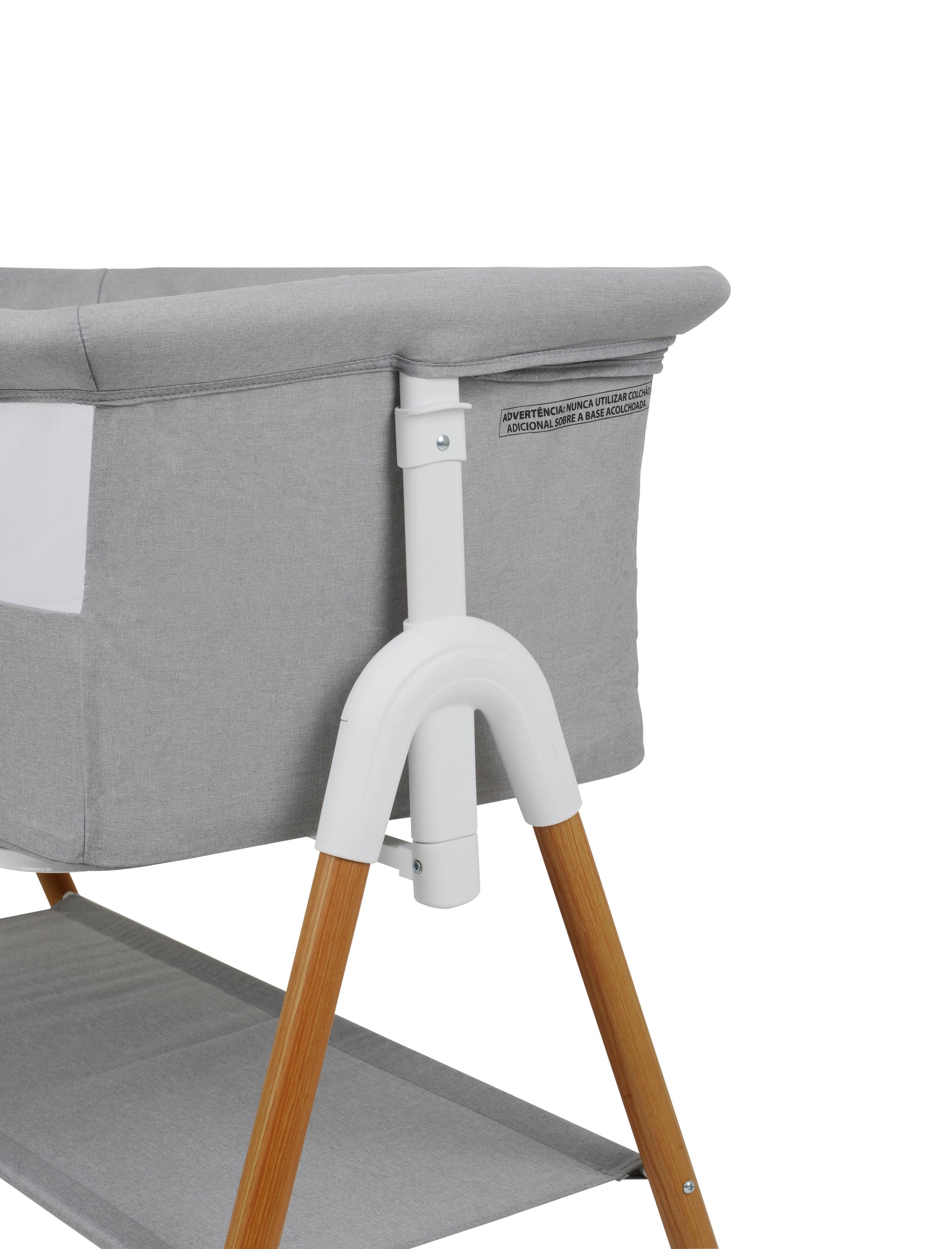 Para garantir total segurança, o produto acompanha 2 cintos de fixação, que conectam o berço à cama tradicional ou box, mantendo-o estável e alinhado. A abertura lateral com zíper e trava facilita posicionar o coleito ao lado da cama, permitindo o método de side by side com total praticidade. A base acolchoada proporciona conforto extra ao bebê, enquanto o porta-objetos inferior oferece espaço para guardar itens essenciais da rotina noturna, como fraldas, mantas e trocas rápidas.
