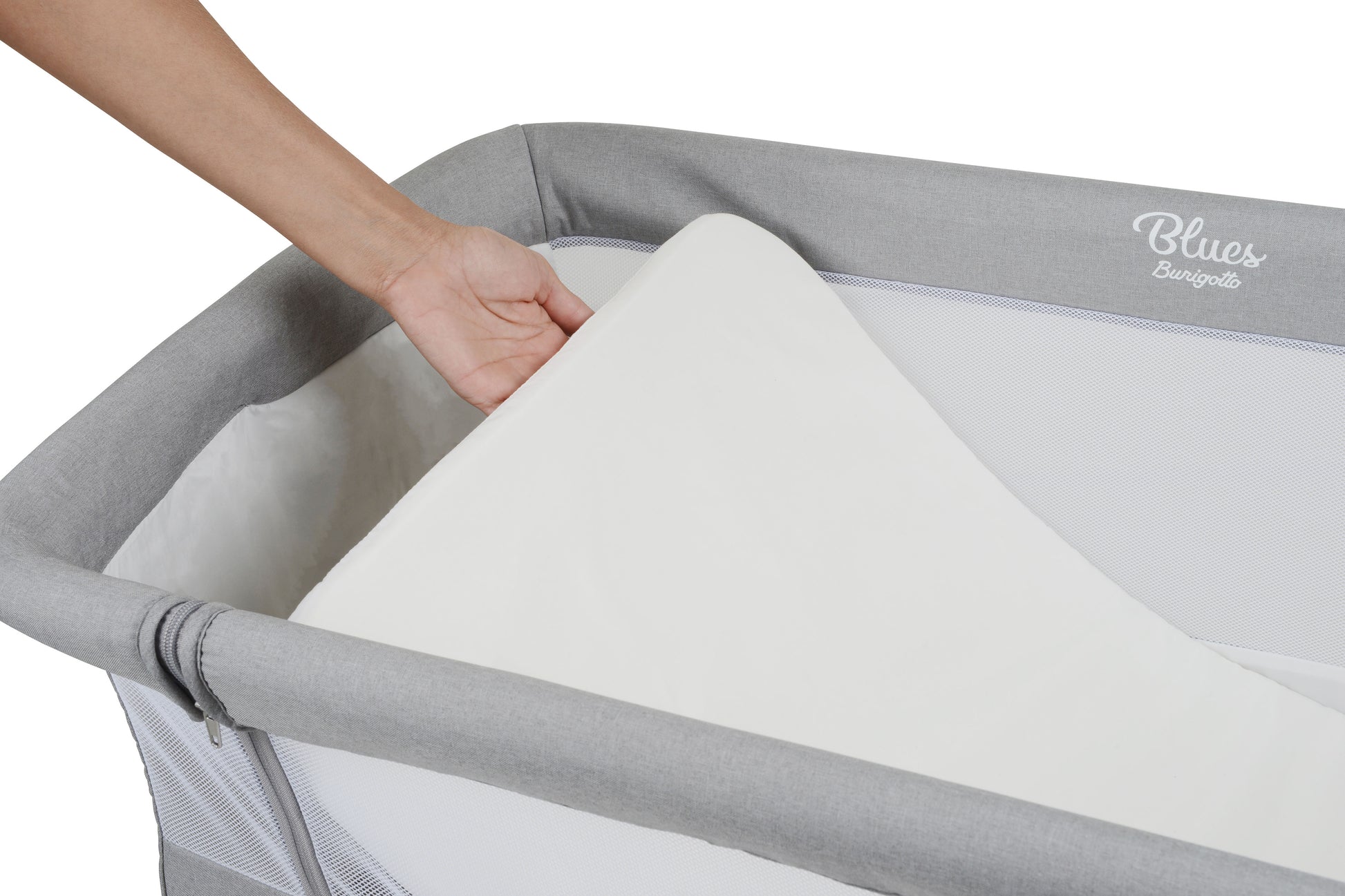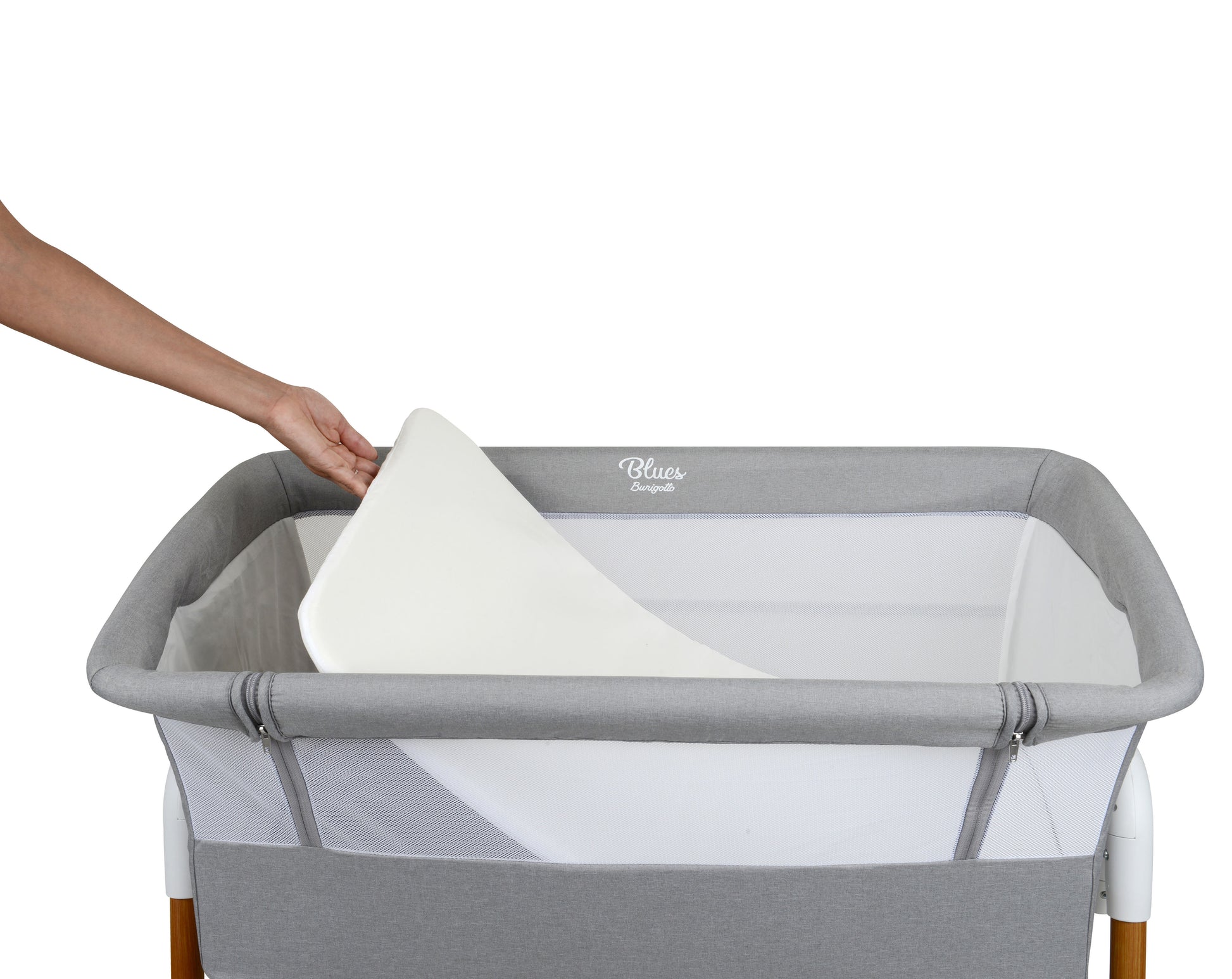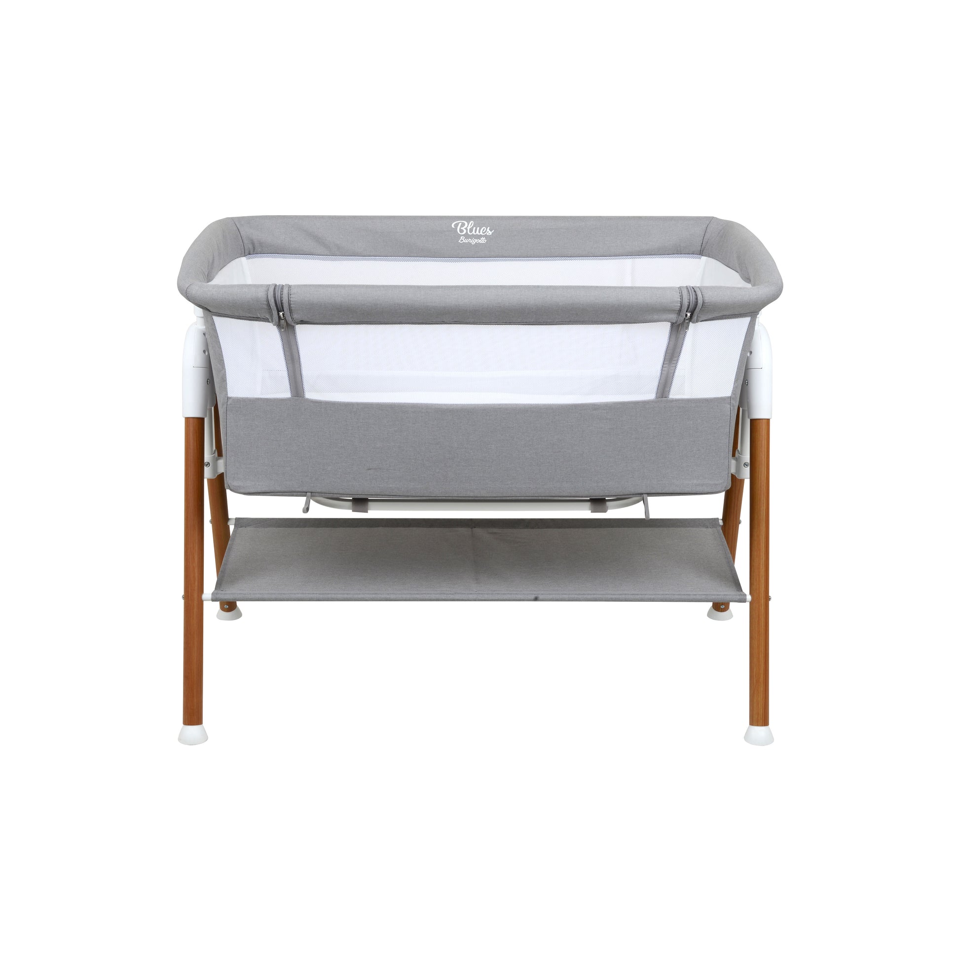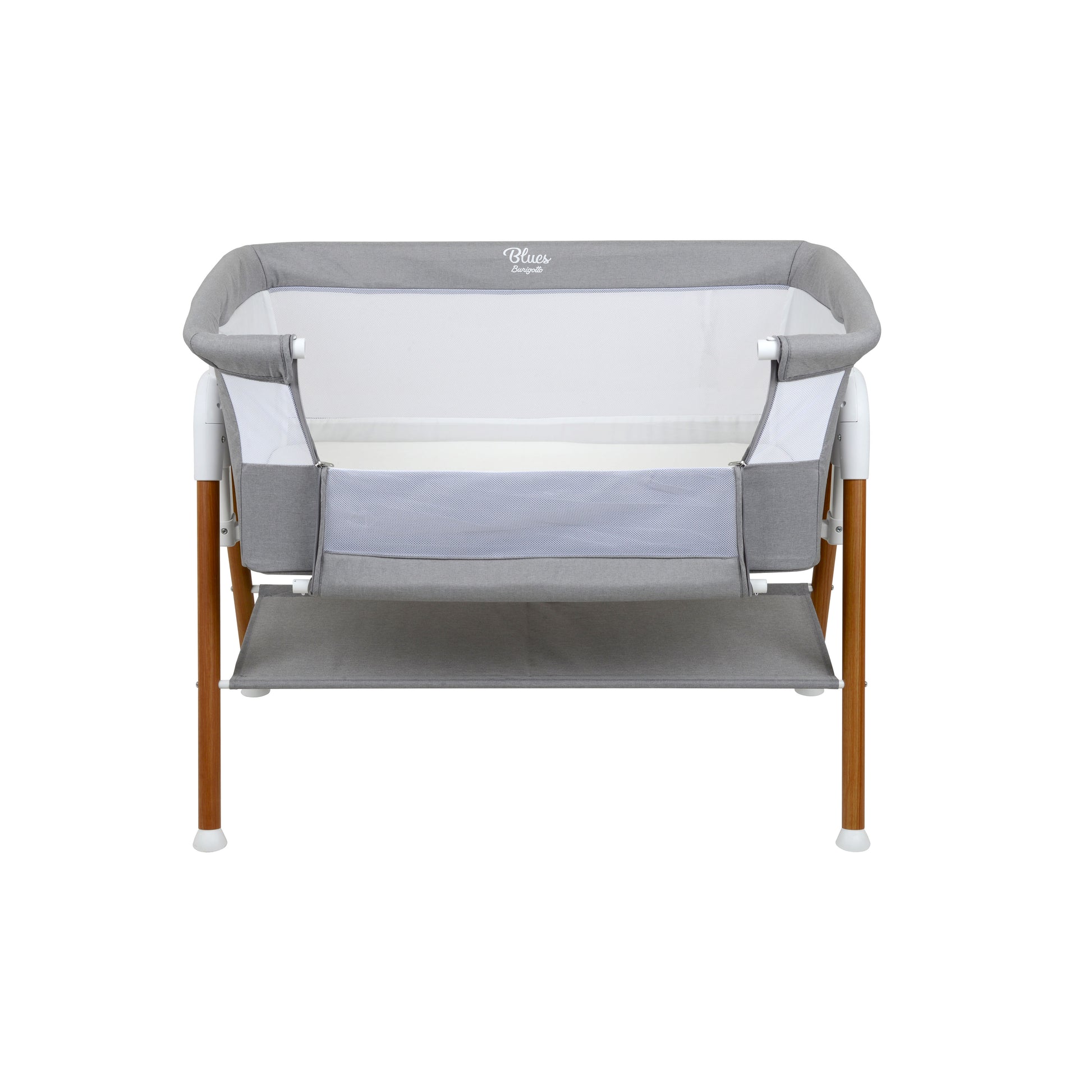 Sua estrutura conta com laterais em tela, oferecendo excelente ventilação e permitindo maior visibilidade do bebê durante toda a noite. O revestimento em tecido 100% poliéster garante durabilidade, fácil limpeza e toque suave. Um dos principais diferenciais do Blues é o seu sistema de ajuste em 5 posições de altura, permitindo adaptar o coleito perfeitamente à cama dos pais e até mesmo ajustar a inclinação lateral — ideal para promover mais conforto em casos de refluxo, deixando as pernas em alturas diferentes.