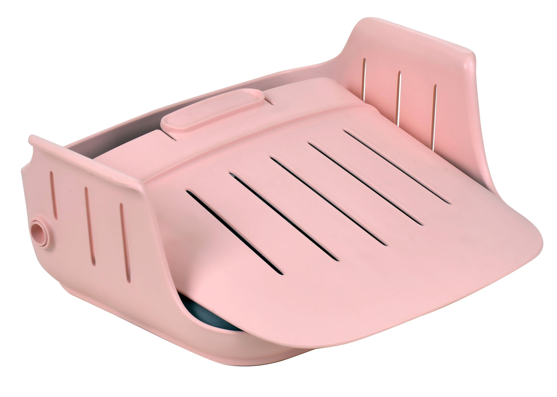 Muito fácil! A bandeja é removível e a estrutura é feita de plástico liso, permitindo limpeza rápida com pano úmido e sabão neutro.