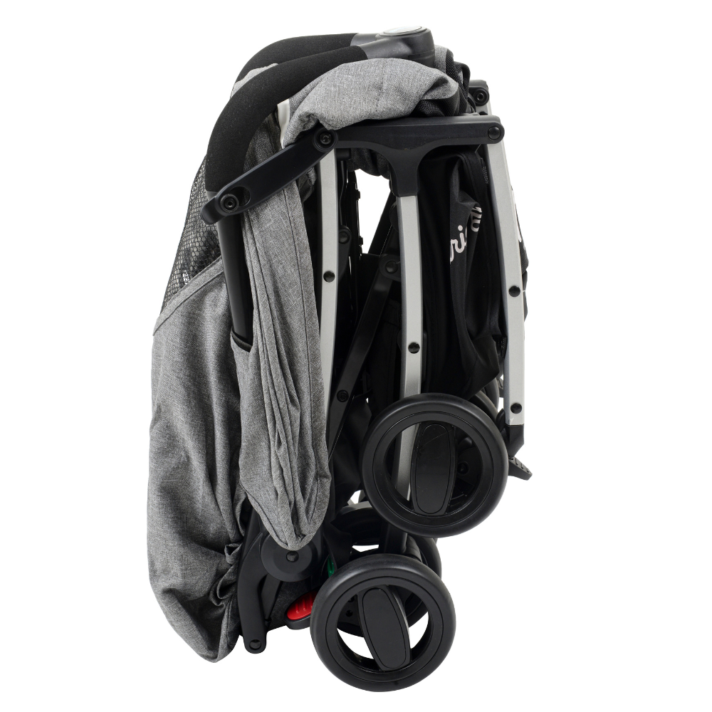 Seu fechamento tridimensional ultracompacto permite armazenar e transportar o carrinho de forma extremamente prática, ocupando o mínimo de espaço no porta-malas ou dentro de casa. O chassi em alumínio garante leveza e resistência, enquanto a capota extensível com visor protege o bebê do sol e do vento, sem perder o contato visual.