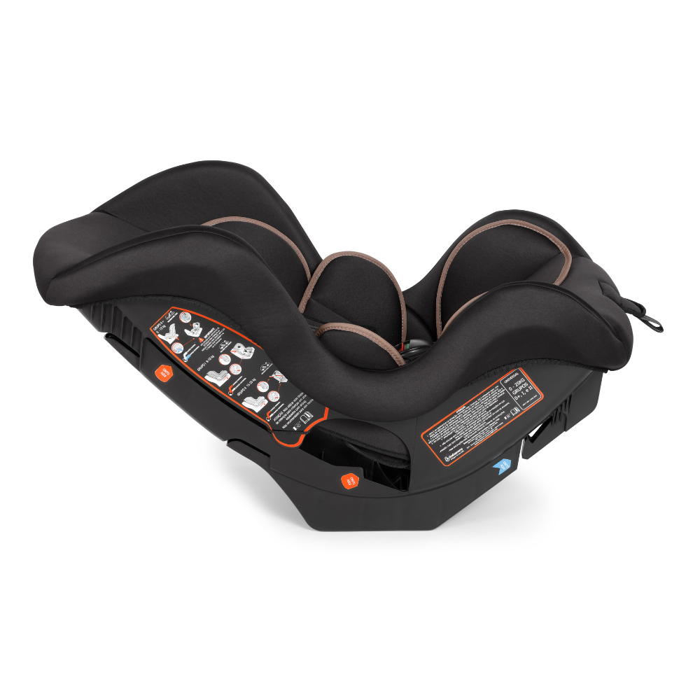 Seu design é moderno, na cor preta, combinando perfeitamente com diferentes interiores automotivos. A cadeira é confortável, anatômica e reforçada, garantindo um transporte seguro, desde recém-nascidos até crianças maiores.